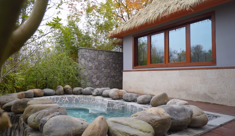 酒店集住宿、餐饮、商务、棋牌、休闲于一体。精致的坐落有24间不同的诗歌主题房间和5栋独立私汤温泉院落,入住酒店将享有上万平米超大私享绿地和300平米花园泳池。是各位来宾远离喧嚣城市的诗意花园,酒店客房面积约70㎡,配以美国金可儿天梦之床、亚克力浴缸、科勒卫浴、智能 TOTO 马桶等一流设备,集品质与奢华于一体。